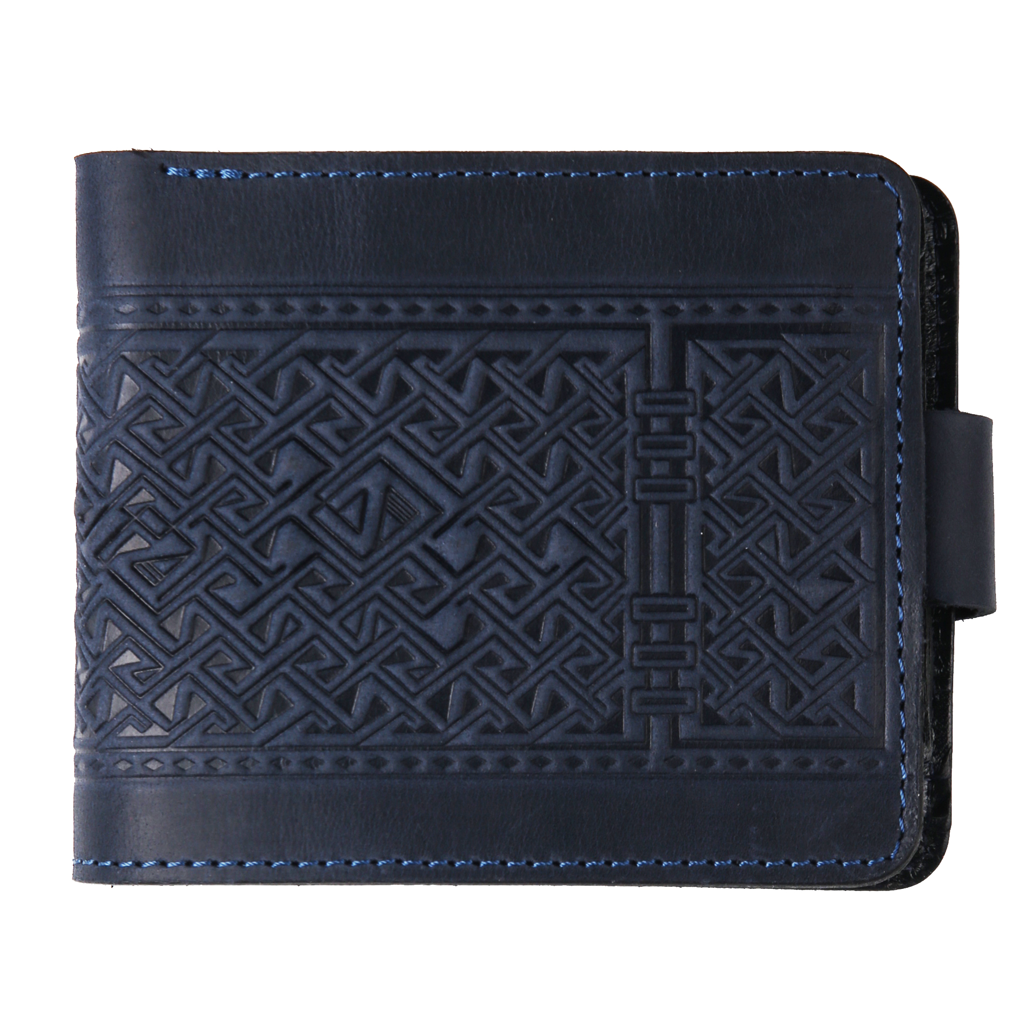 Гаманець синій з натуральної шкіри , з  орнаментом .