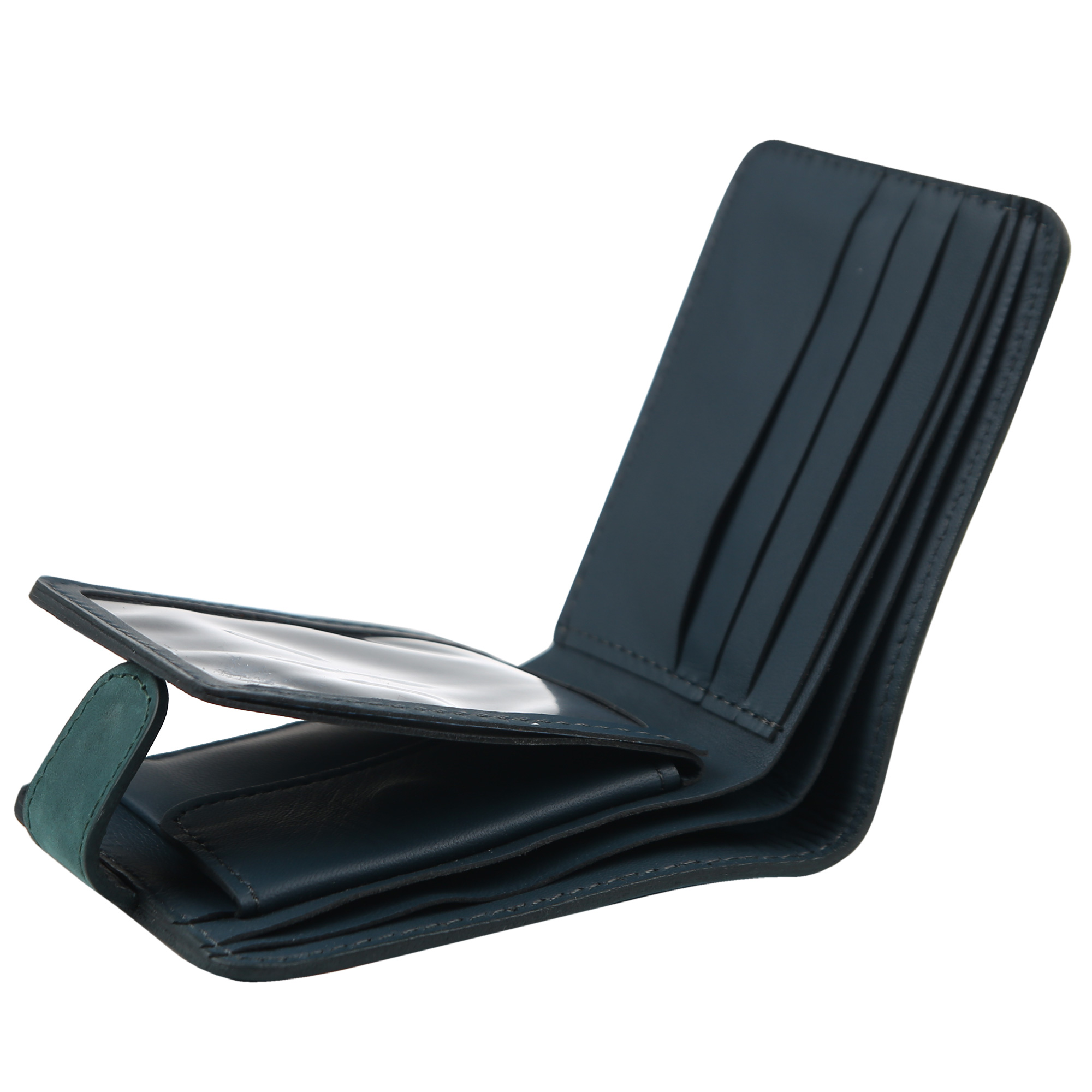 Гаманець темно-зелений з натуральної шкіри , з  орнаментом .