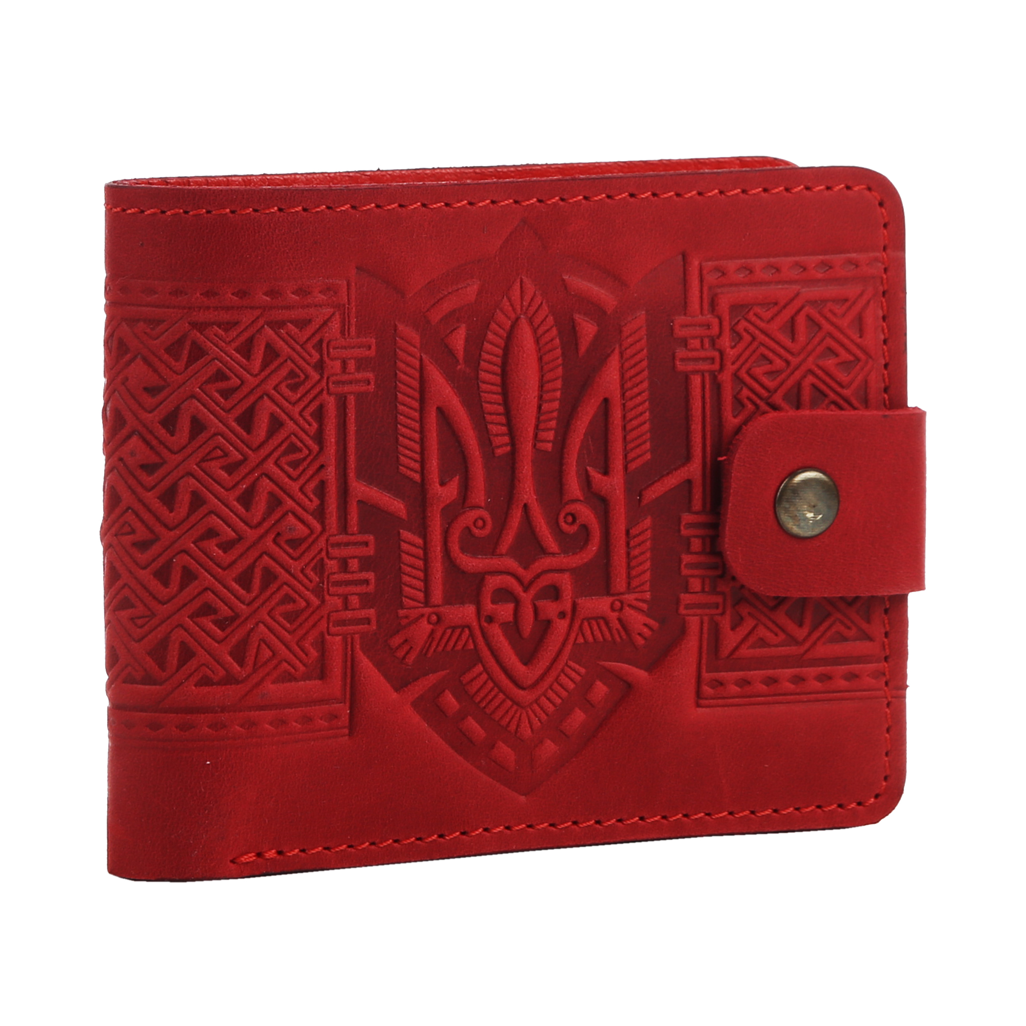 Гаманець червоний складений (герб), з тисненням