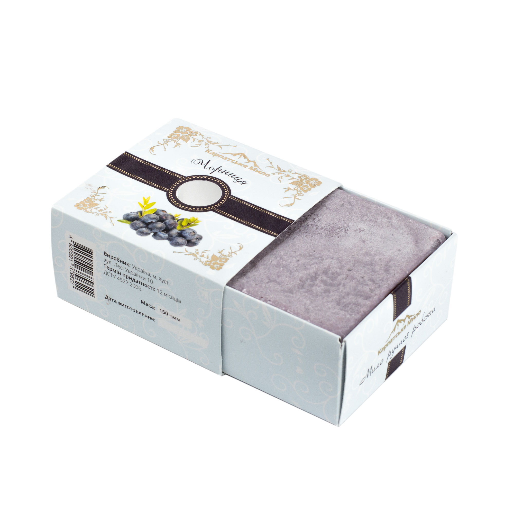 Склад: органічна мильна основа, олія виноградних кісточок, екстракт лісової чорниці, олія жожоба.