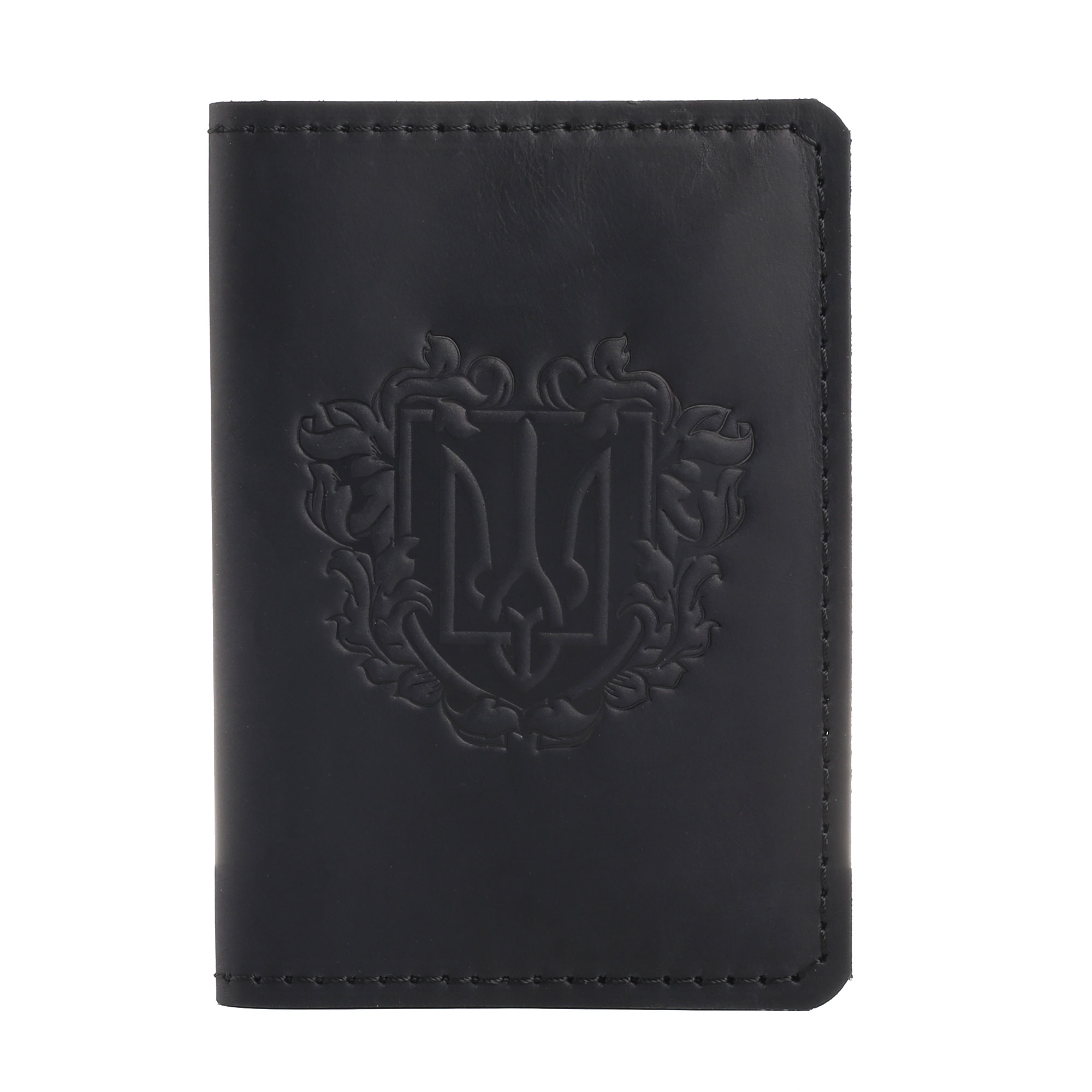 Обкладинка на паспорт чорна “Герб – орнамент”