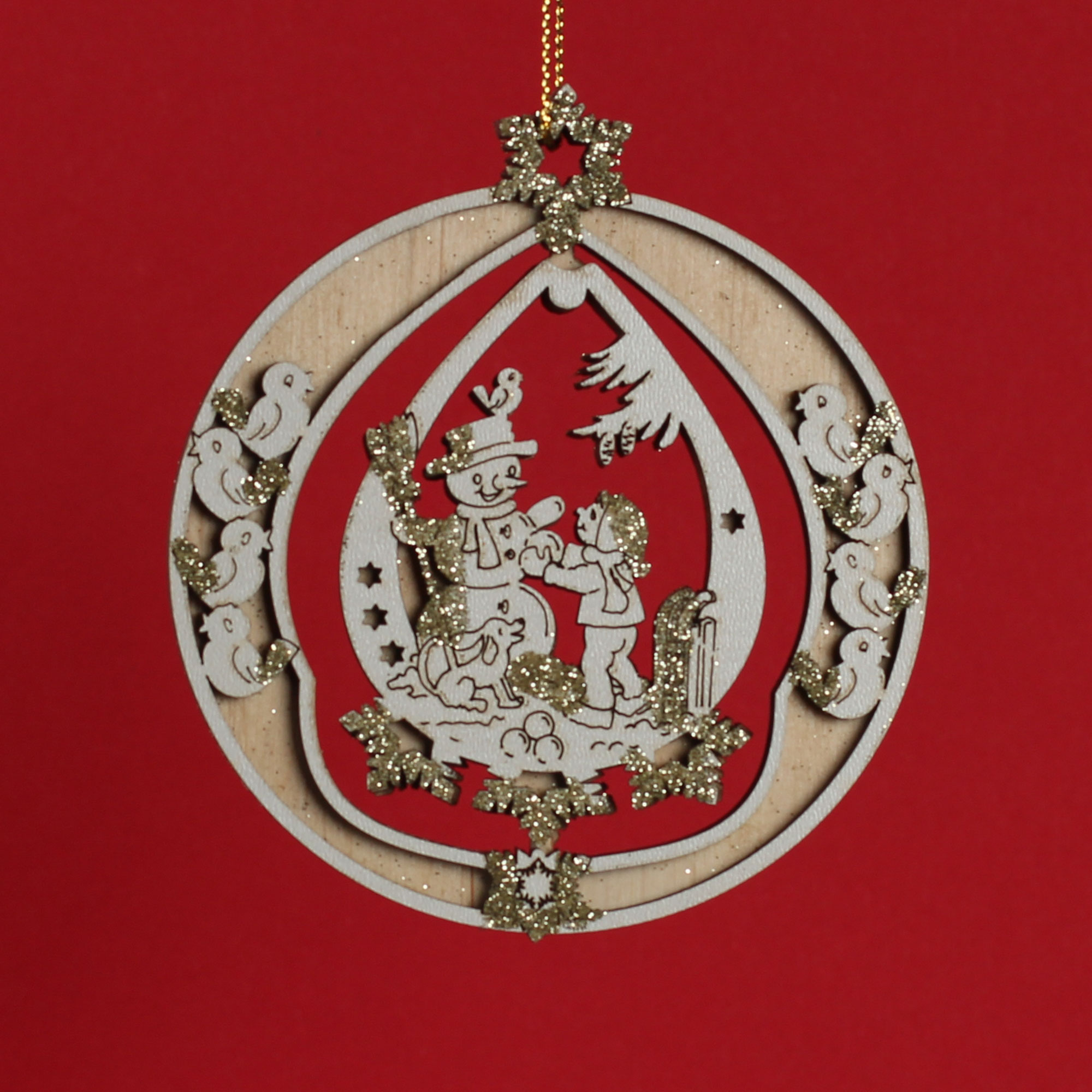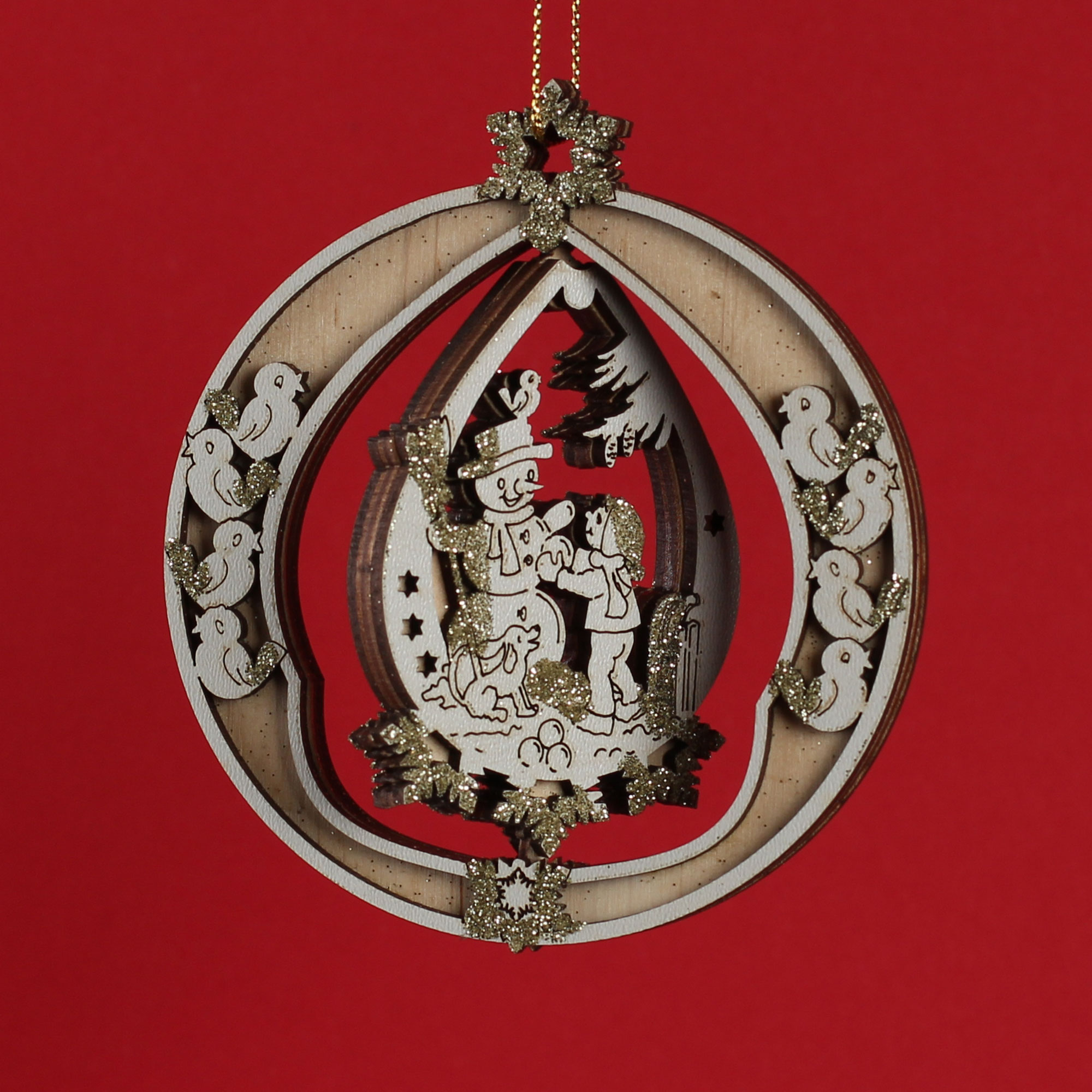 Новорічна, дерев’яна іграшка “Сніговик і дитина” 3Д.