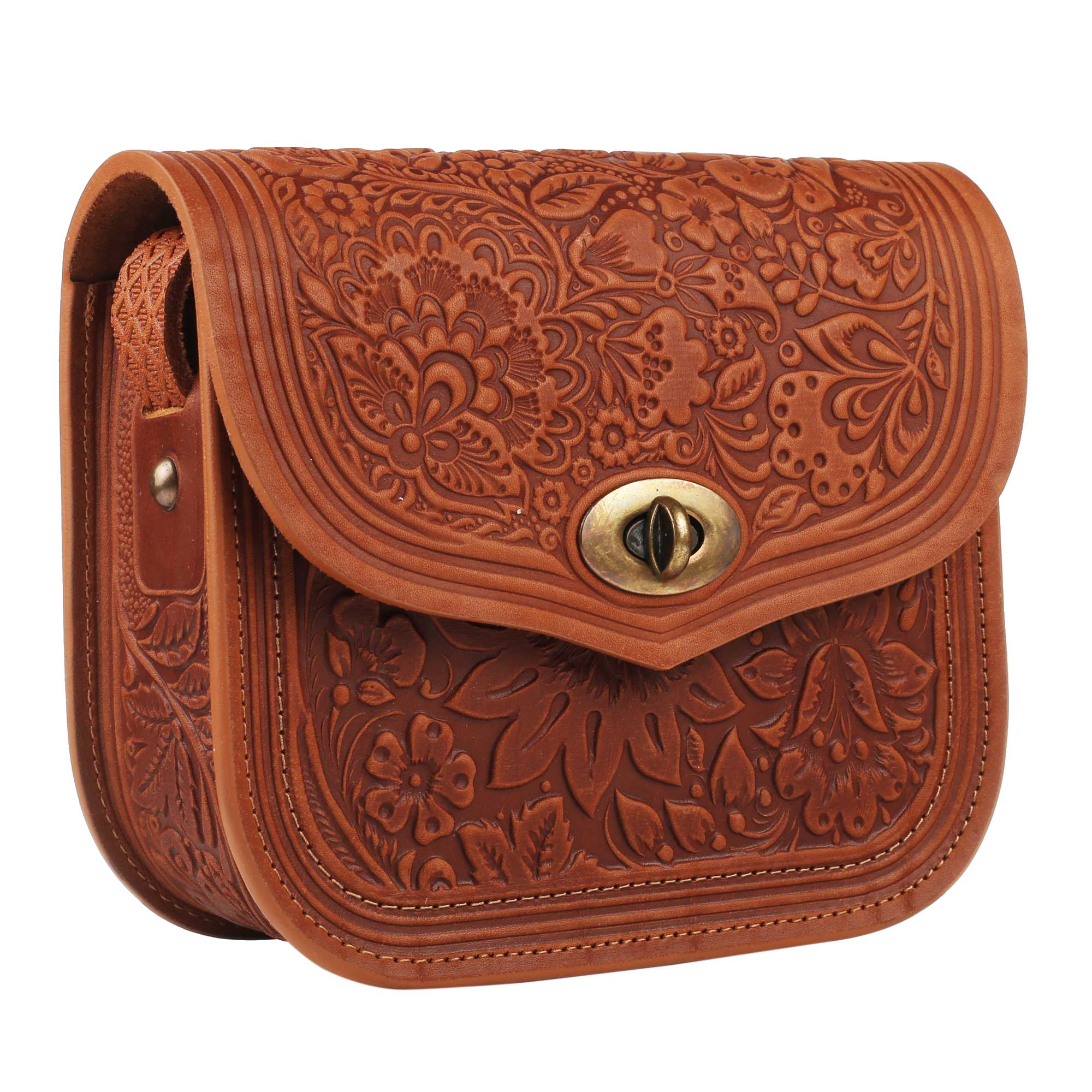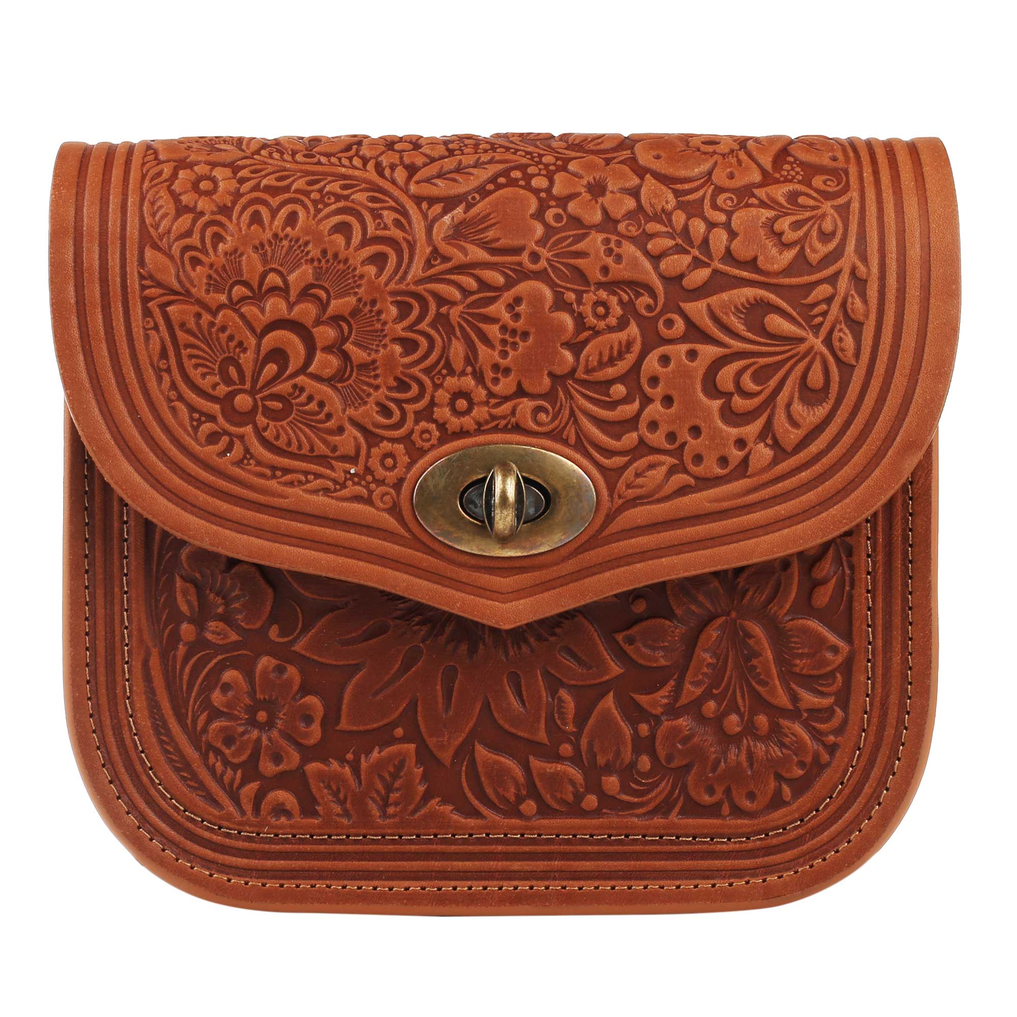 Сумка шкіряна коньяк “Квітка”