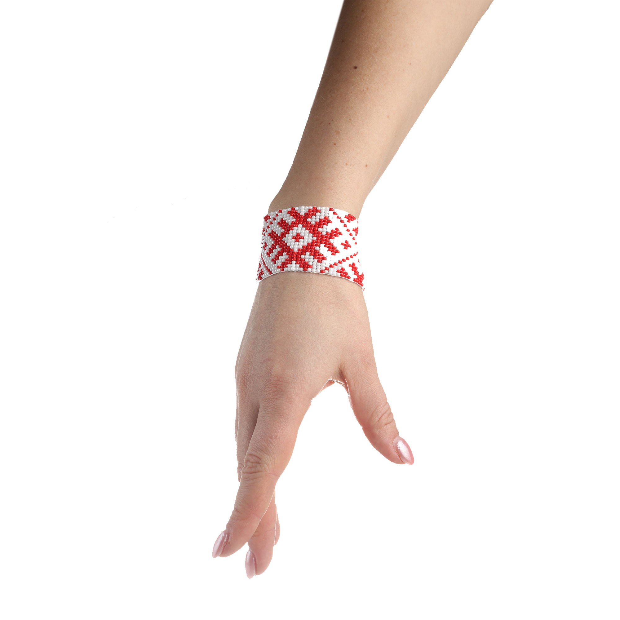 Браслет з бісеру, біло-червоний орнамент “Вишиванка”