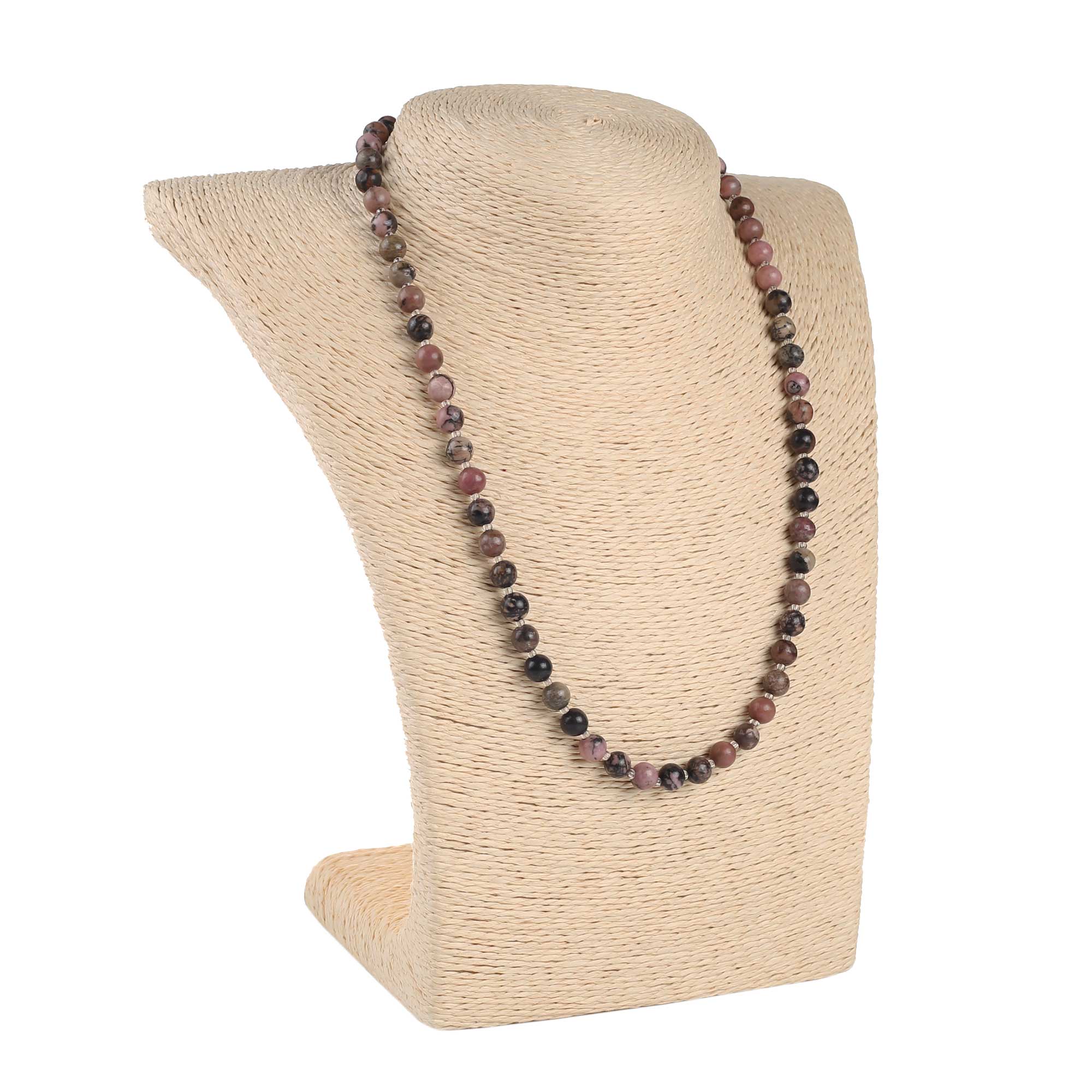 Кольє з натурального каміння родоніт коричневий 20 см (+ 3см. защіпка)