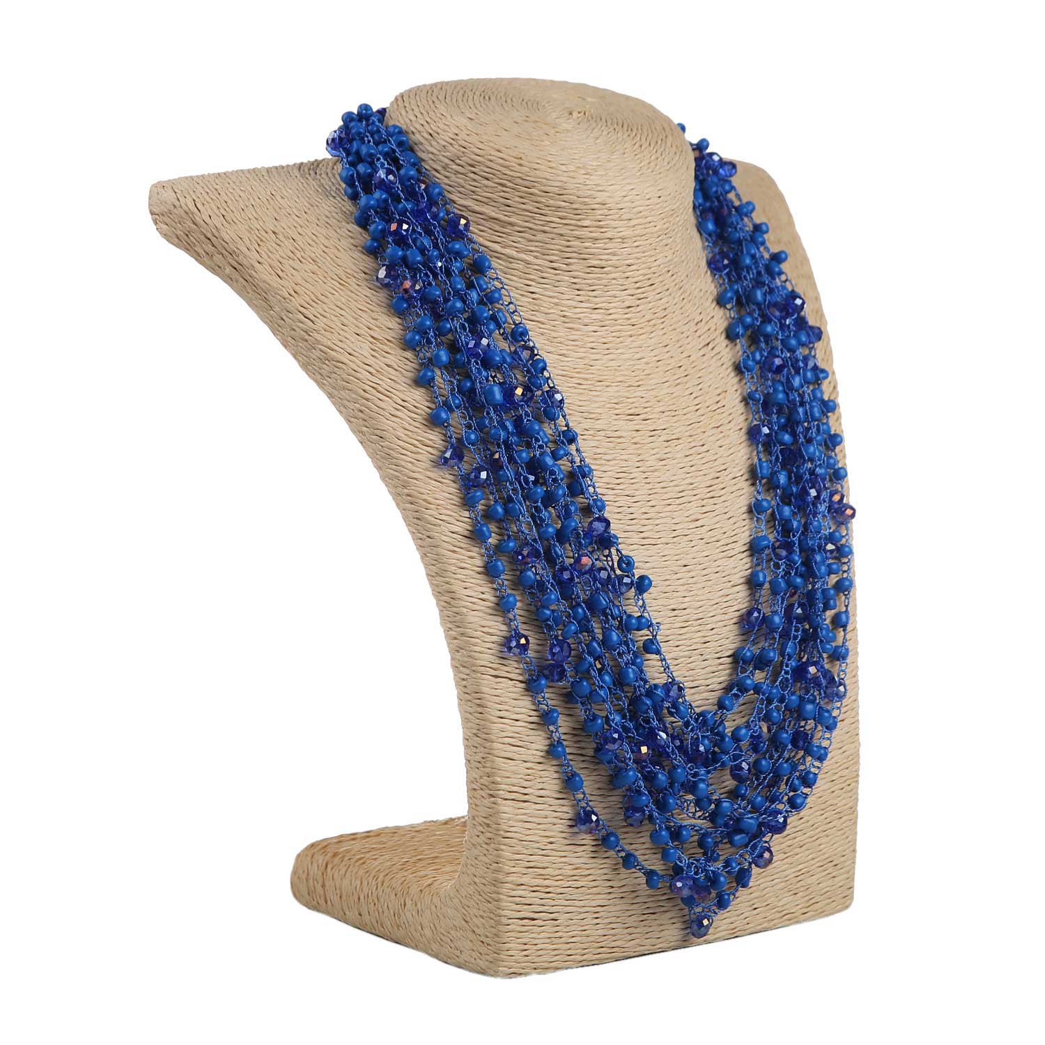 Кольє з бісеру-кришталю, синє