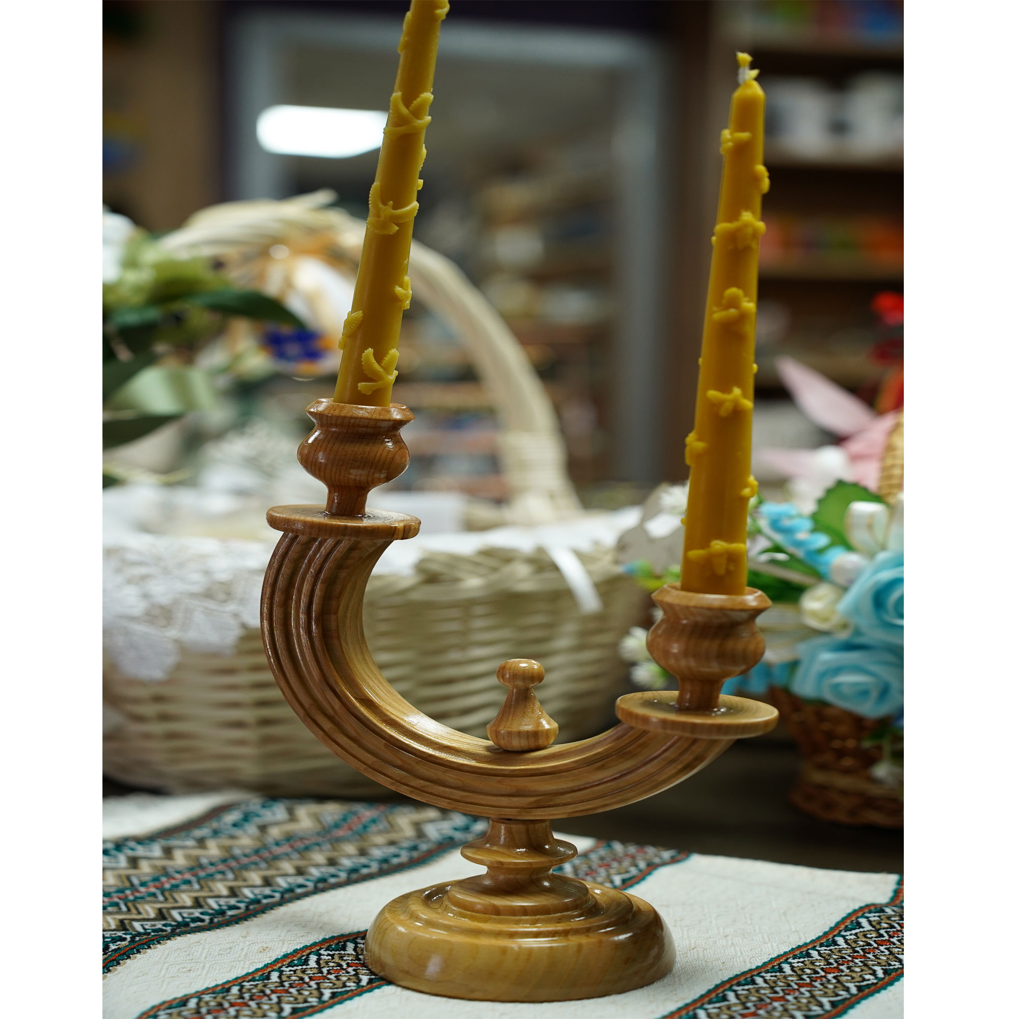 Підсвічник подвійний дерев’яний.