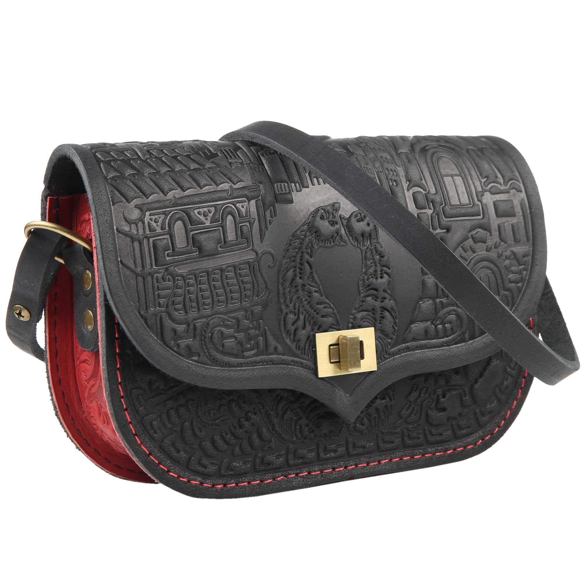 Шкіряна сумка ручної роботи , з тисненням .