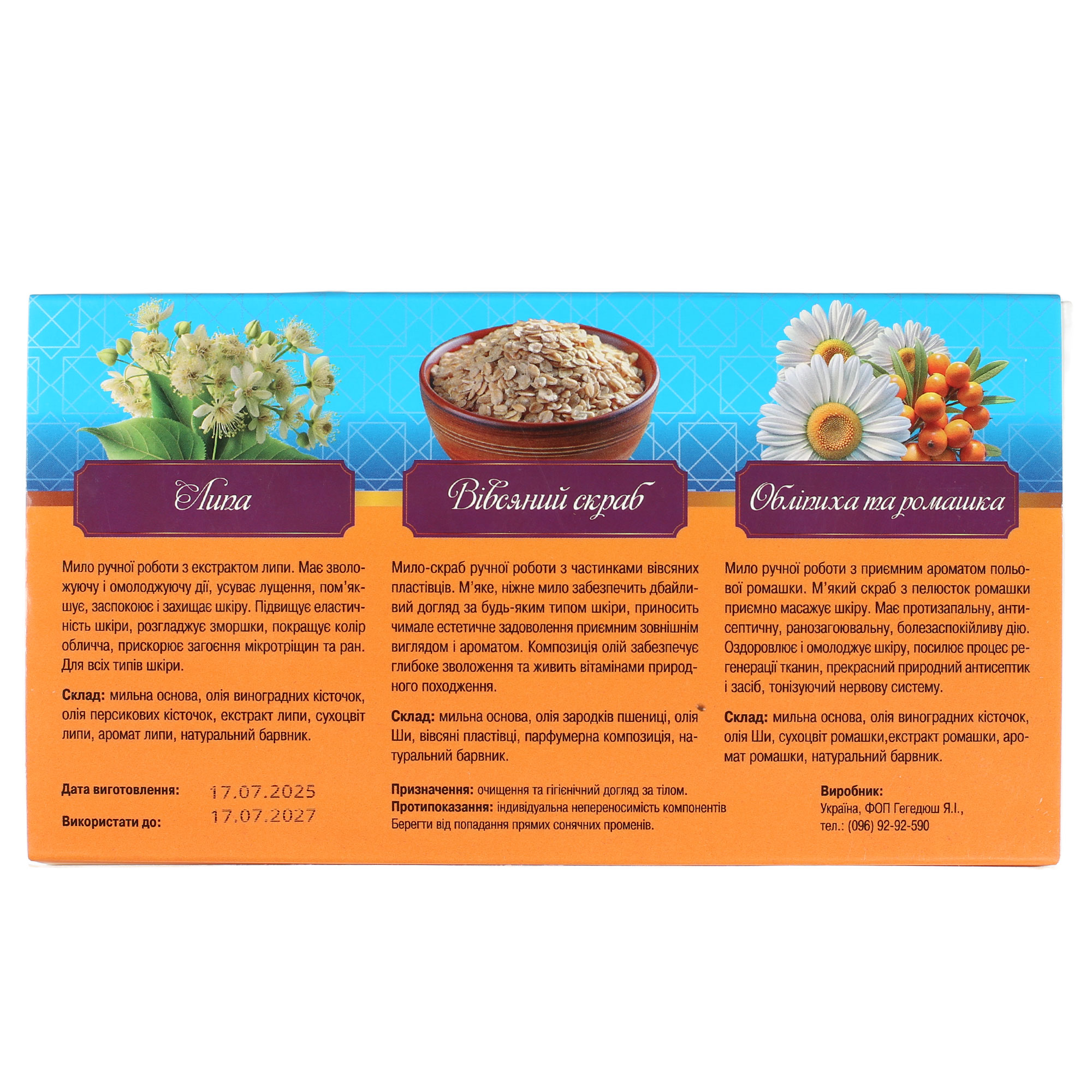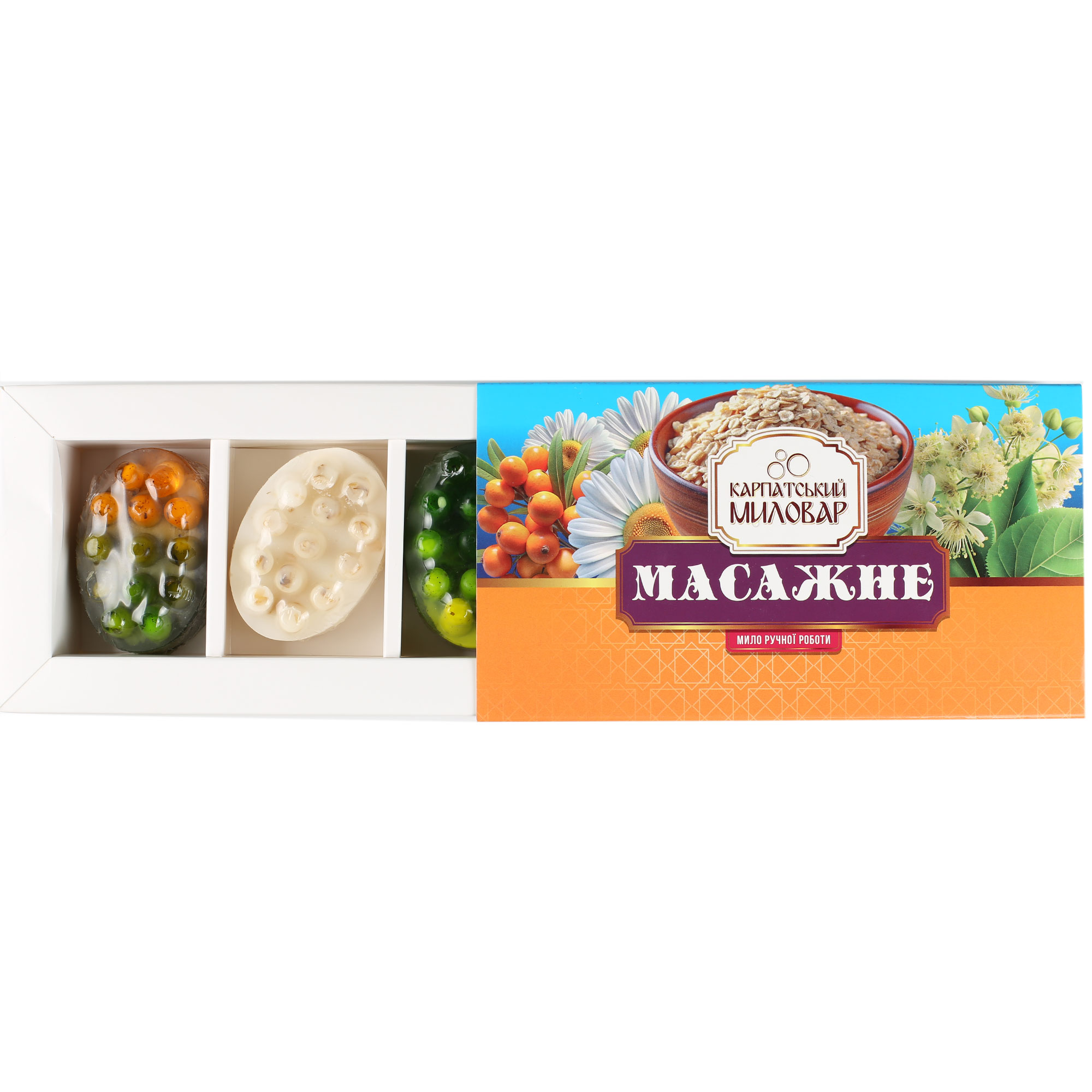 Набір масажного мила “Липа, вівсяний скраб, обліпиха та ромашка”