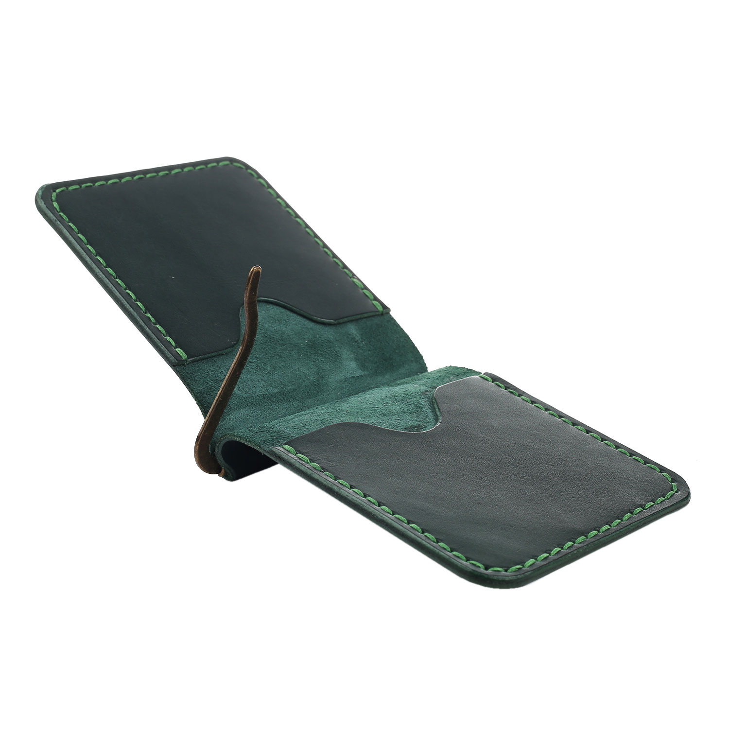 Зажим для грошей зелений гладкий