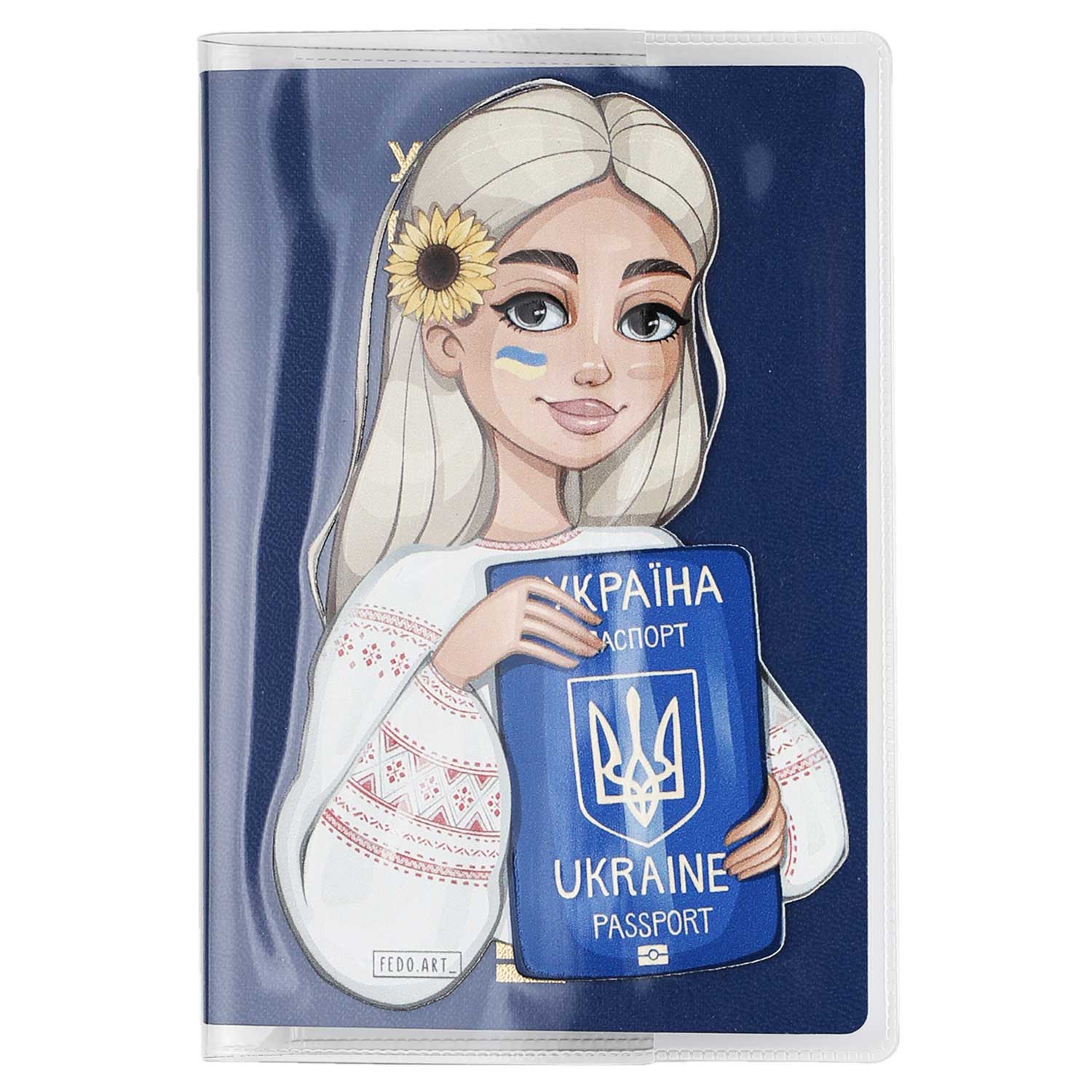 Силіконова обкладинка на паспорт, з зображенням дівчини з паспортом України.