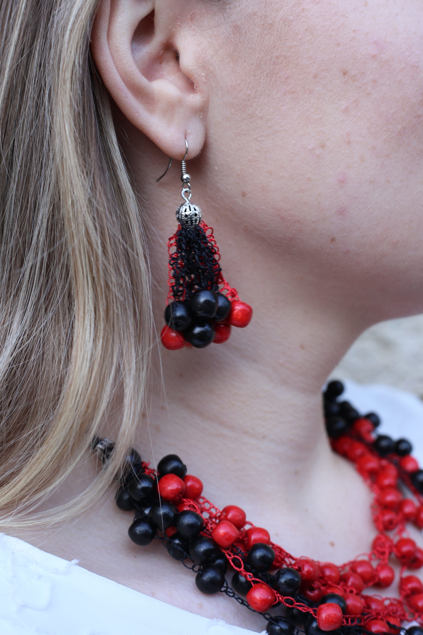 Сережки дерев’яні, червоно-чорні