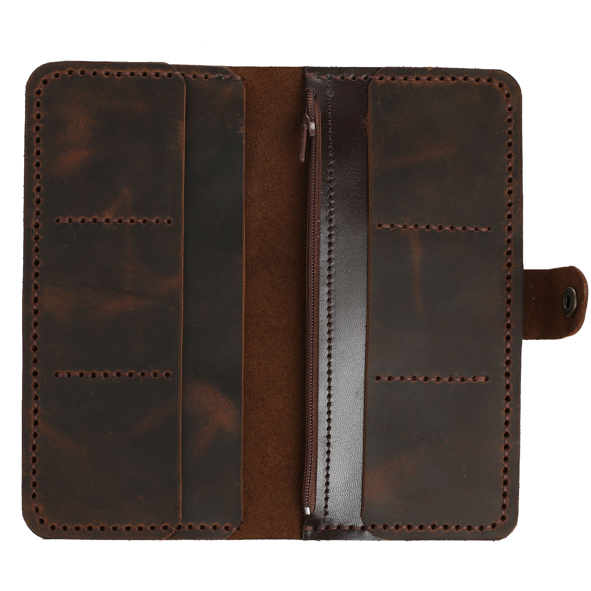 Ззовні гаманець оброблений за допомогою воску, приємний на дотик.