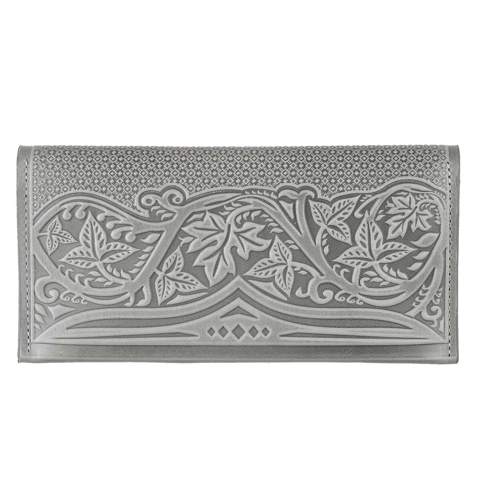 Шкіряний гаманець ручної роботи, довгий, з тисненням