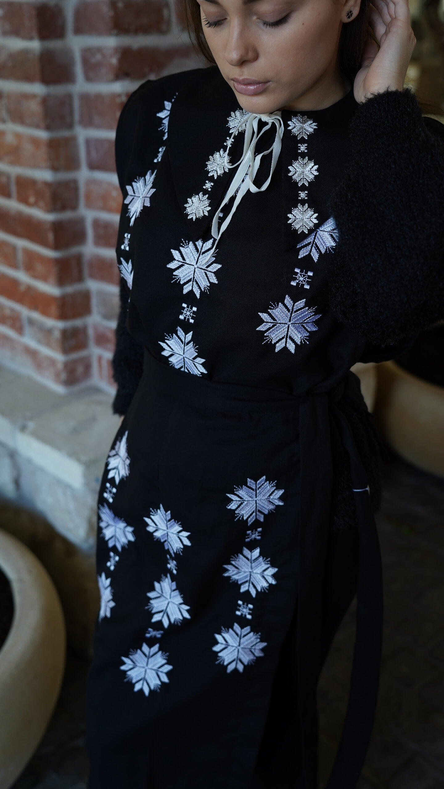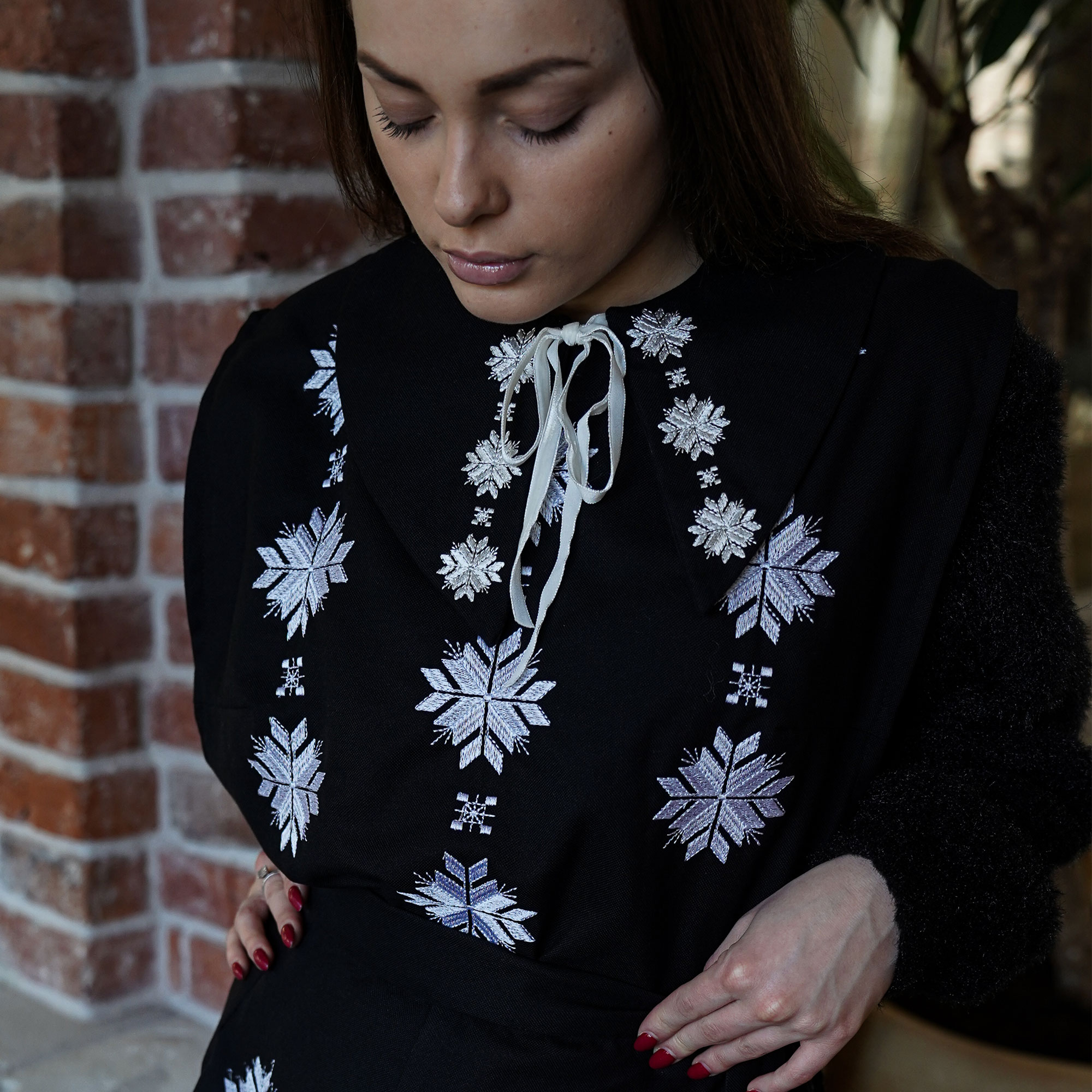 Жіноча вишита маніжка (жилетка) чорно-біла